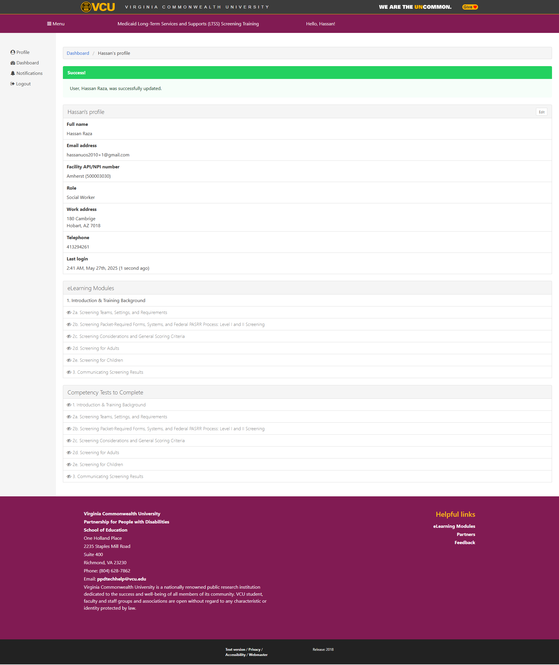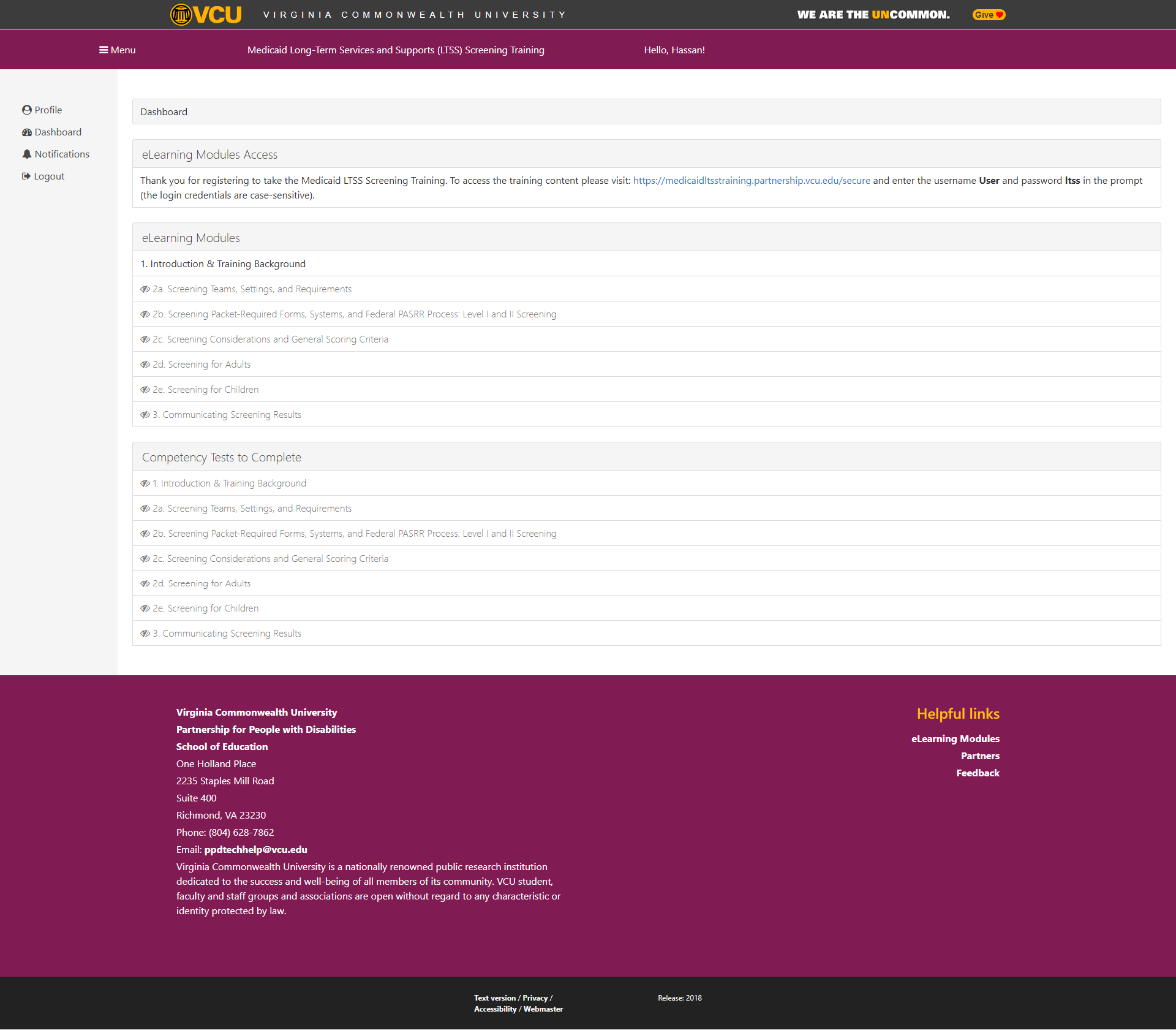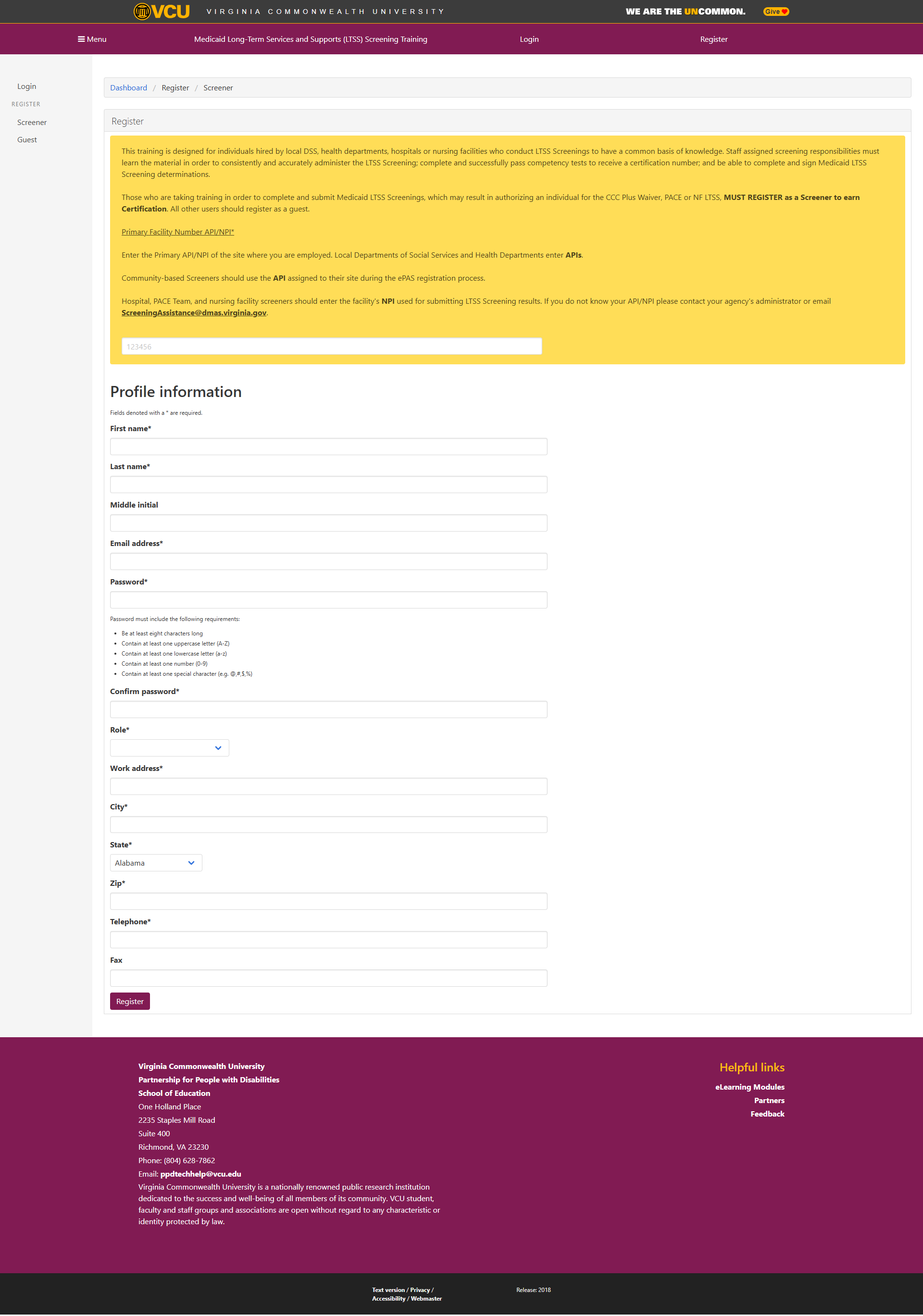 The Medicaid Long-Term Services and Supports (LTSS) Screening Training is a competency-based, web-based program developed by the Partnership for People with Disabilities at Virginia Commonwealth University (VCU) in collaboration with the Virginia Department of Medical Assistance Services (DMAS). This modular training equips healthcare professionals including nurses, social workers, and physicians with the necessary skills to assess individuals' eligibility for Medicaid-funded nursing facility care or Home and Community-Based Services (HCBS) in Virginia.