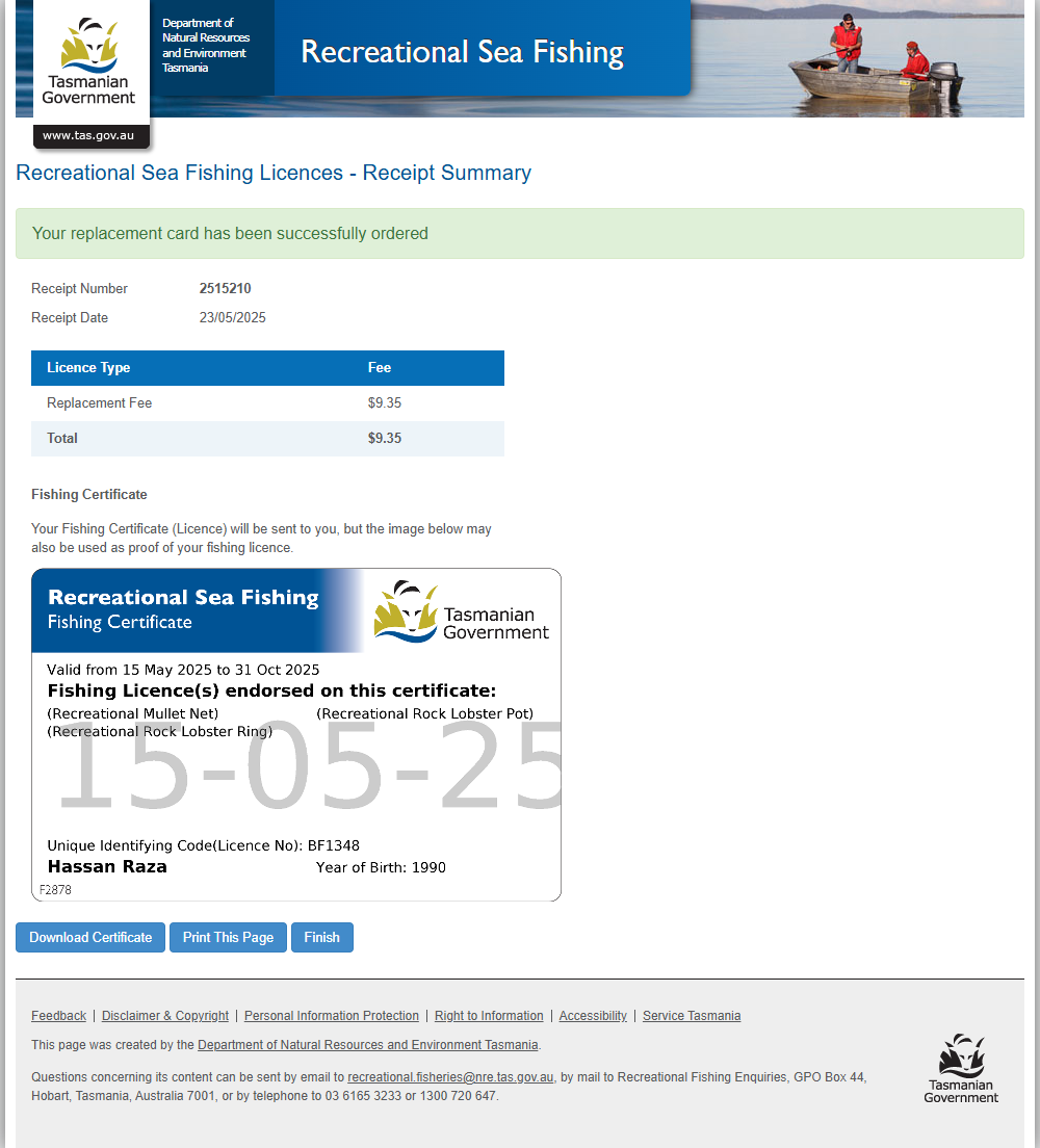 Designed and developed a web-based system for managing recreational sea fishing licences in Tasmania. The platform allows users to register, purchase, and manage their fishing licences online with a user-friendly interface. Built with a secure backend using Kotlin Spring Boot and PostgreSQL, the system supports user authentication, licence validation, and administrative tools for managing licence data and compliance.