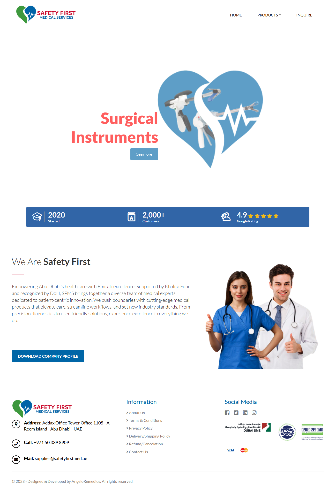 Safety First Medical Services (SFMS) is a licensed, Emirati-owned healthcare provider based in Abu Dhabi, specializing in emergency medical services, accredited training, and medical product distribution. Recognized by the Department of Health (DoH) and affiliated with international organizations like the AHA, ASHI, and HABC, SFMS is committed to raising the standards of emergency response and healthcare education across the UAE and GCC.