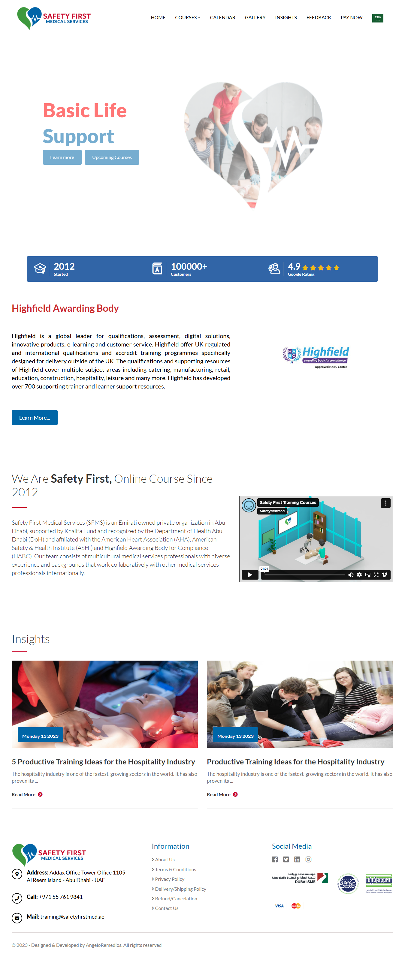 Safety First Medical Services (SFMS) is a licensed, Emirati-owned healthcare provider based in Abu Dhabi, specializing in emergency medical services, accredited training, and medical product distribution. Recognized by the Department of Health (DoH) and affiliated with international organizations like the AHA, ASHI, and HABC, SFMS is committed to raising the standards of emergency response and healthcare education across the UAE and GCC.